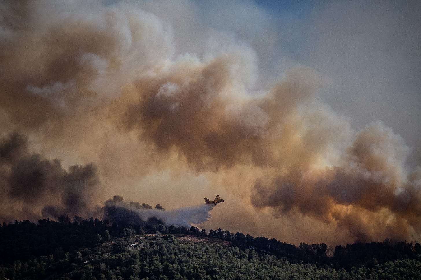 The fire started with a spark at the side of a road in Ribaute, very close to where I live, for reasons as yet unknown. It tore up the hill, whipped by the blustery wind. The Aleppo pines, with the deep-pile carpet of needles at their feet, soon disappeared in black smoke. The holm oaks went with them. At the time of writing 160 km2 between here and the Mediterranean are affected. It is the worst fire in France since 1949. All of our Canadair and Dash planes are working in rotation with helicopters. There are over two thousand firefighters on the ground.